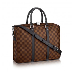 The Porte-Documents Voyage PM combines elegant design with functionality. The iconic Damier Eb猫ne canvas makes it the perfect Louis Vuitton business bag.