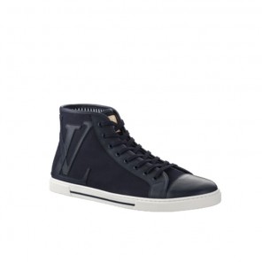 This vintage-look sneaker boot in boldly Colored canvas comes with an eye-catching striped lining and an outsize LV logo stitched on the side.