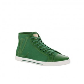 This vintage-look sneaker boot in boldly Colored canvas comes with an eye-catching striped lining and an outsize LV logo stitched on the side.