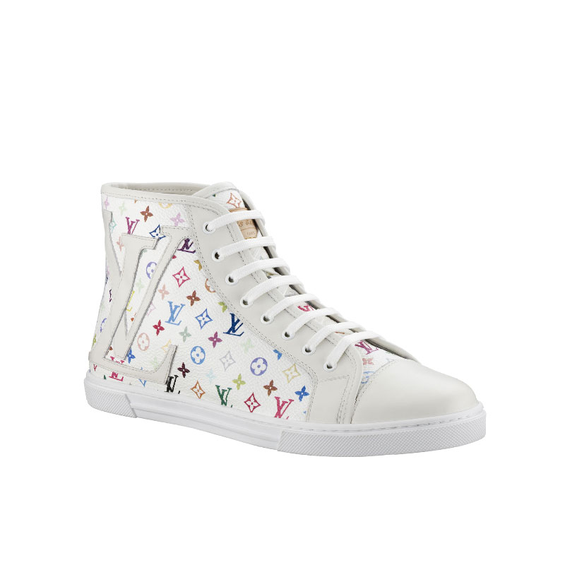 These on-trend vintage-look sneaker boots in Louis Vuitton's vibrant Monogram MultiColore canvas come with an outSize LV logo stitched on the side.