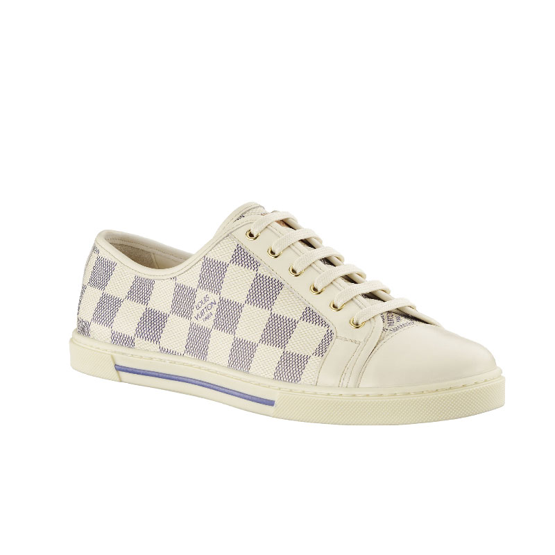 These stylish vintage-effect sneakers come in Louis Vuitton's breezy Damier Azur canvas for a casual chic summer look.