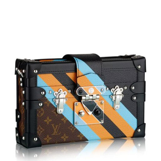 A tiny trunk with all the hallmarks of House savoir-faire, this edition of the Petite Malle displays colour-block stripes, inspired by those painted on personalised historic Vuitton luggage. This polished piece can be carried as a clutch or cross-body for a day to evening use.
