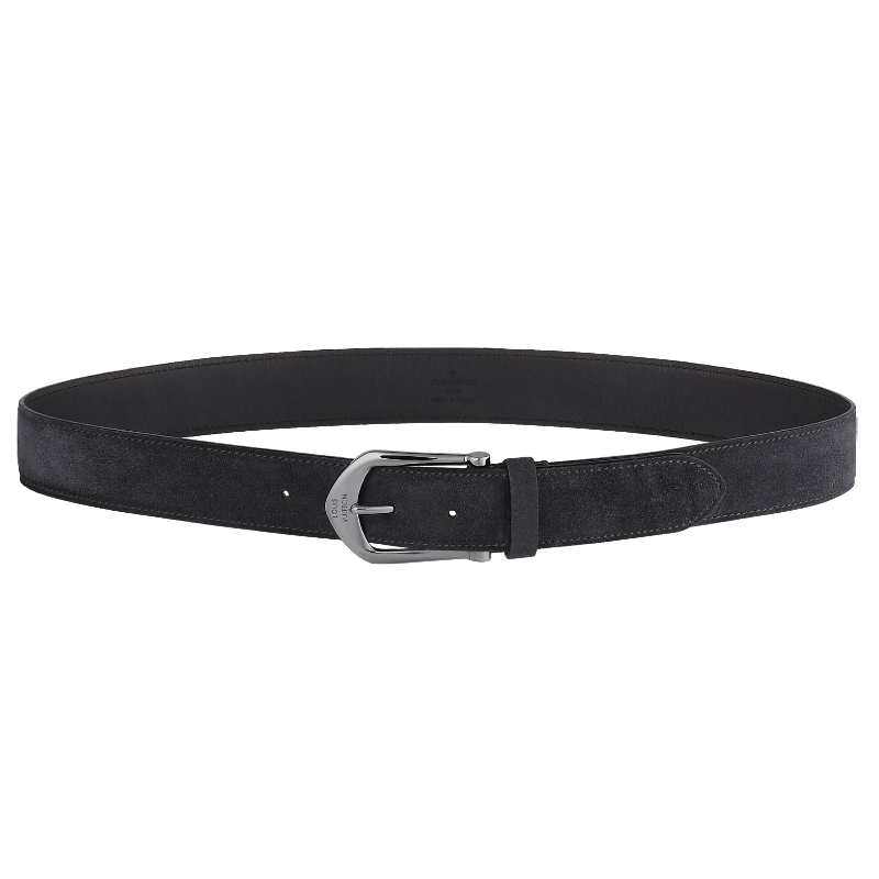 This casual-chic belt features a distinctive arrow-shaped buckle discreetly engraved with the Louis Vuitton signature. In finest suede calf leather and with its new ruthenium finishing, the belt is perfectly matching the Louis Vuitton Men shoes collection.