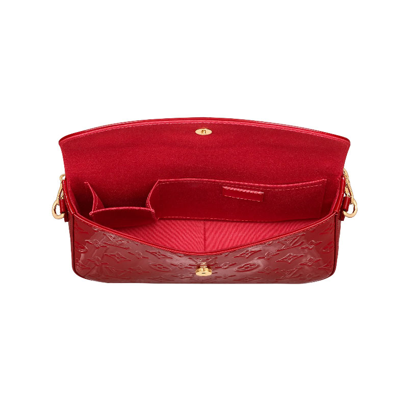 Glossy and glamourous, the Rodeo Drive city bag in Monogram Vernis leather is feminine and can be carried on the shoulder or held as an oversize clutch for a more sophisticated evening feel.