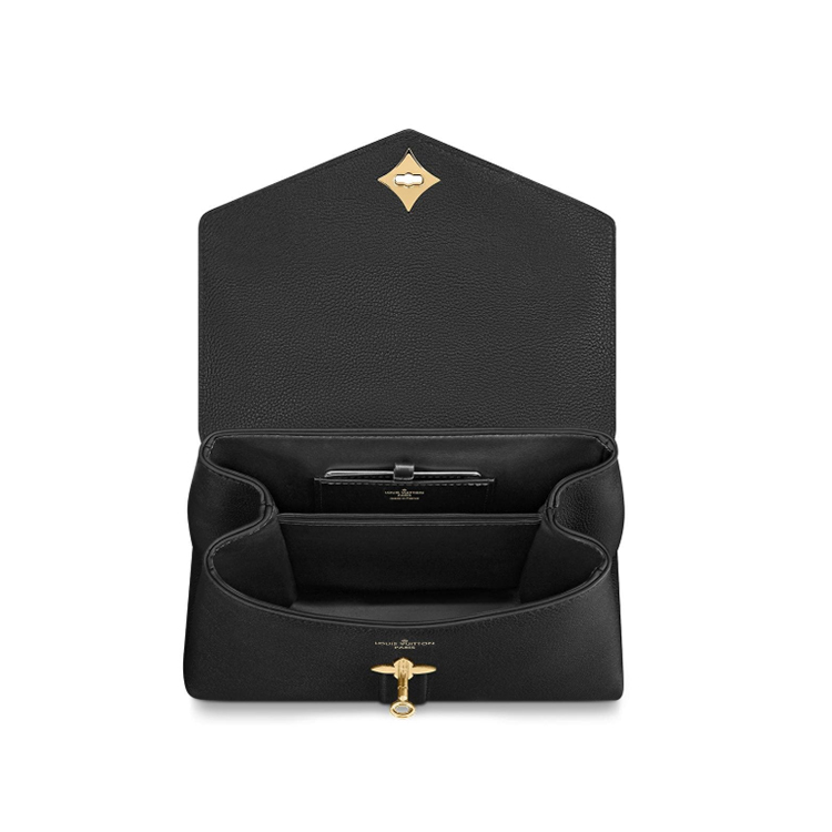 The striking Rose des Vents PM handbag is made from grained and smooth calf leather and boasts gold-color hardware including a gold-color LV padlock. A perfect everyday companion for a sophisticated silhouette, it has one handle for elegant elbow carry and an adjustable removable strap for practical cross-body wear.