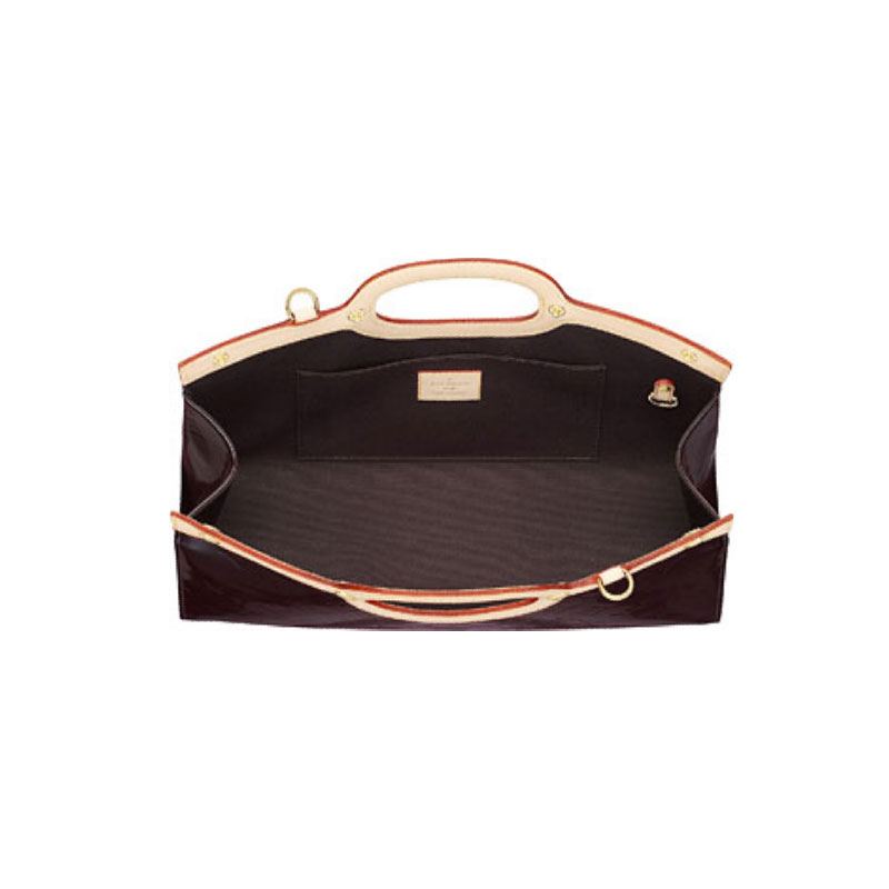 - Monogram Vernis leather, removable natural cowhide leather shoulder strap, textile lining