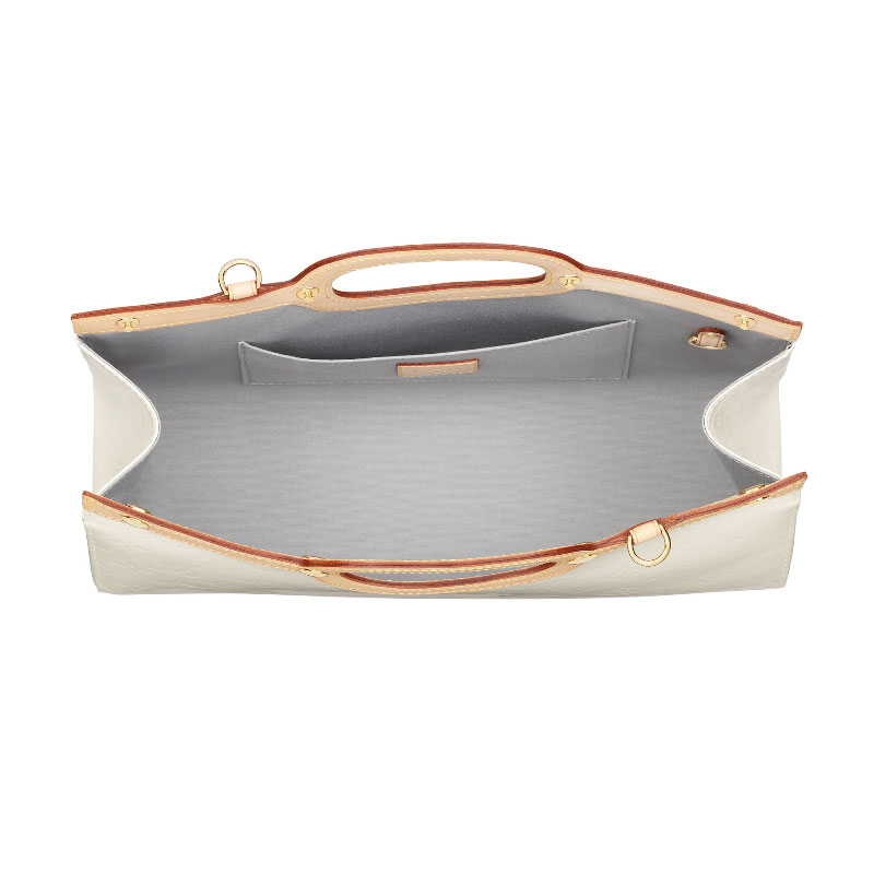 - Monogram Vernis leather, removable natural cowhide leather shoulder strap, textile lining