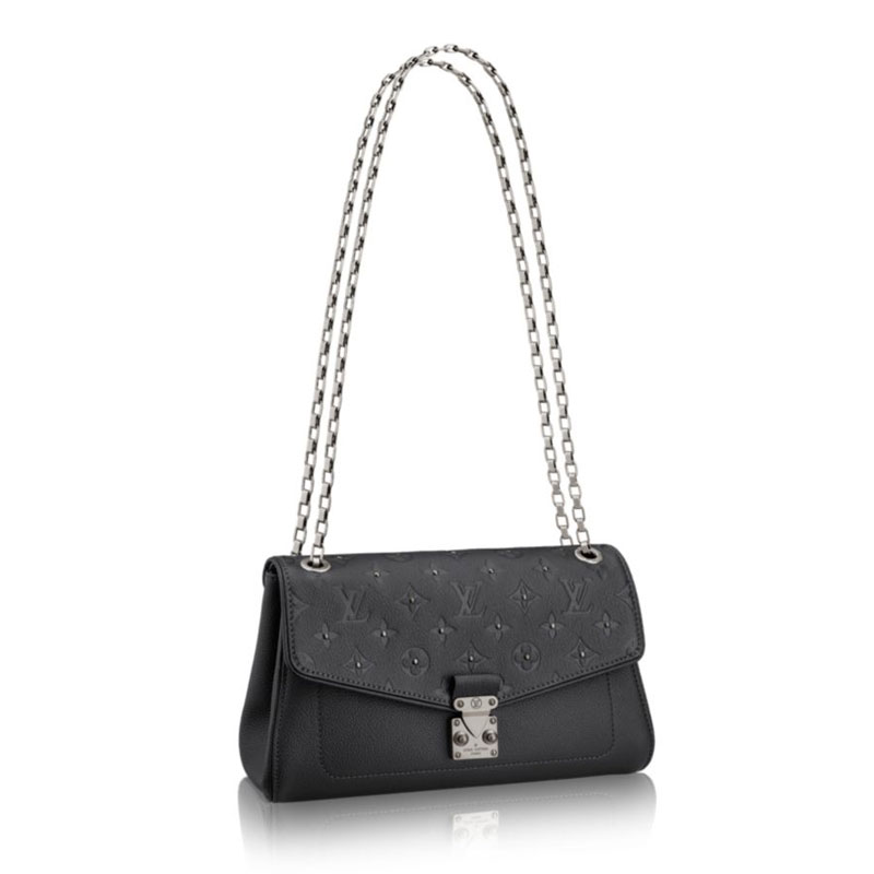 By day, the feminine Saint-Germain bag shows off its elegant lines and luxurious Monogram Empreinte leather in Platine. Come evening, the studs of this bold new version sparkle in the party lights. A sliding chain handle offers multiple carry options.