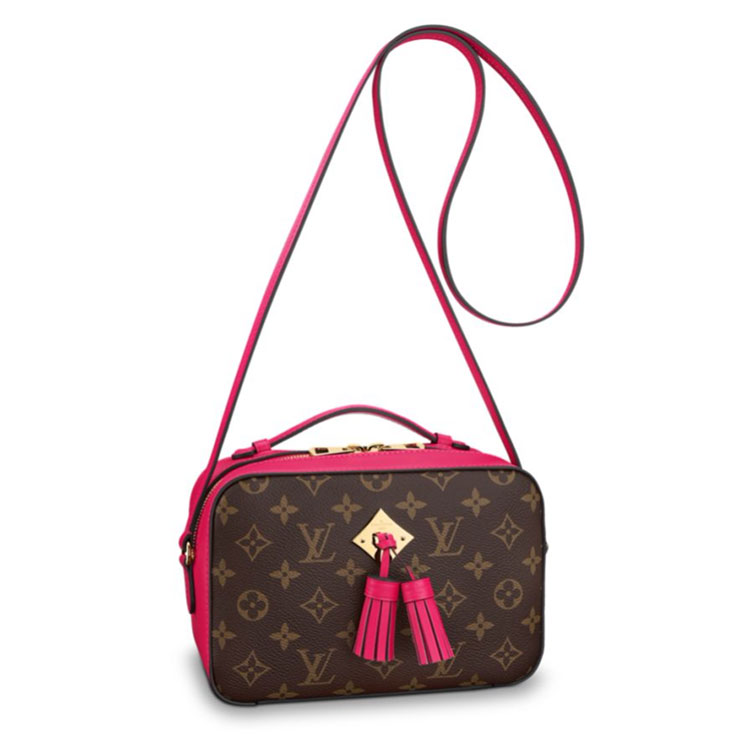 Monogram canvas and smooth calfskin combine in the Saintonge, a compact bag with a youthful vibe. The leather lends contrast and volume to the design, and the tassels are a playful touch. With its top handle and long strap, the bag can be styled in different ways.