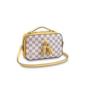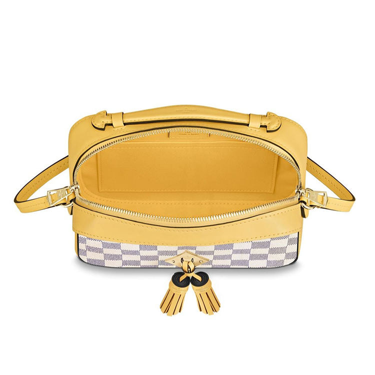 Damier Azur canvas pairs up with fresh pastel leather trim for a summery version of the most-wanted Saintonge handbag. The perfect partner for any beach-to-city look, this limited edition captures the spirit of the season with its fresh, playful vibe. The trendy top handle and long strap offer plenty of carry options for different attitudes.