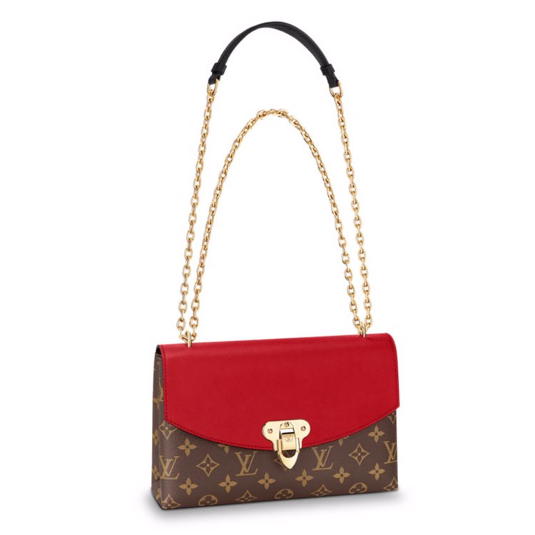The new Saint Placide chain bag combine Monogram canvas with supple, colored leather, accented by a gleaming golden clasp borrowed from historic House trunks. The perfect size for day-to-night wear, it easily fits a long wallet and other essentials.