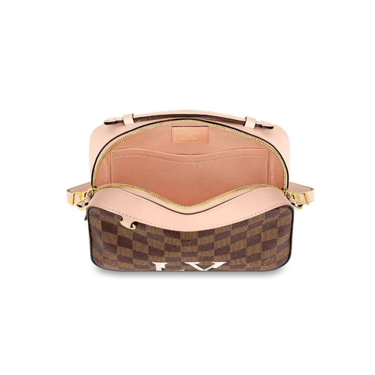 This new version of the compact, casual-chic Santa Monica bag combines Louis Vuitton’s emblematic Damier Ebene canvas with smooth cowhide leather. An outsized LV signature with a clever 3D effect adds an eye-catching touch. Its on-the-go style makes this bag a great everyday companion – perfect for shopping trips.