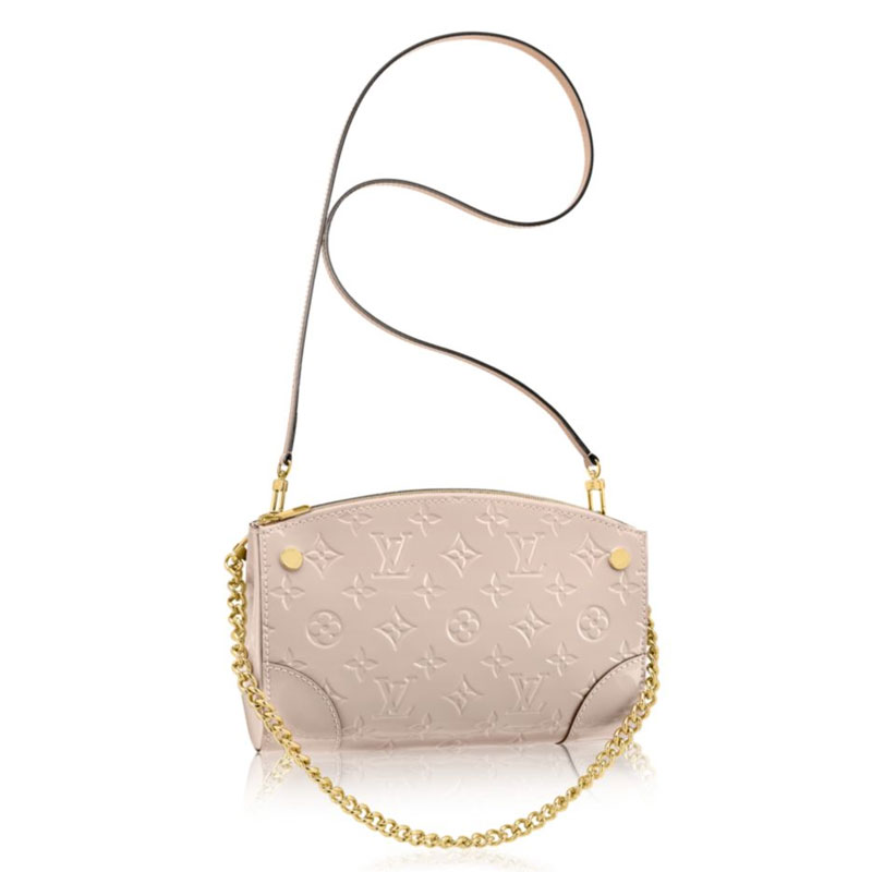 As its name suggests, this bag is bound to be a favorite with fashionistas. The new Santa Monica Clutch in embossed Monogram Vernis patent calf leather does double uses as a city bag or evening pochette. Attached to the long leather strap, it’s a cross-body for hands-free wear; remove the strap for a day-to-night style: a chain-handled shoulder bag. Refined heritage details – flat leather corners, gold-toned nail heads – subtly evoke historic Vuitton trunks.