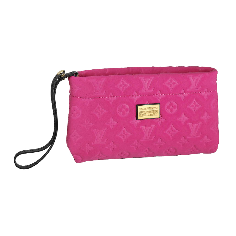 This Scuba clutch from the Cruise collection by Marc Jacobs, in a reinterpreted and innovative neoprene version of Monogram, is functional and lightweight. It is striking with its metallic plaque and is easy to carry thanks to a wrist strap.