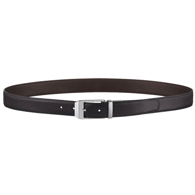 - Reversible: black calf leather on one side, brown calf leather on the other