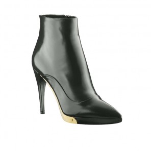 Super-sleek and ultra-modern, these glazed leather ankle boots feature a sexy stiletto heel, a pointed toe and a striking golden-finish plaque engraved with the Louis Vuitton signature.