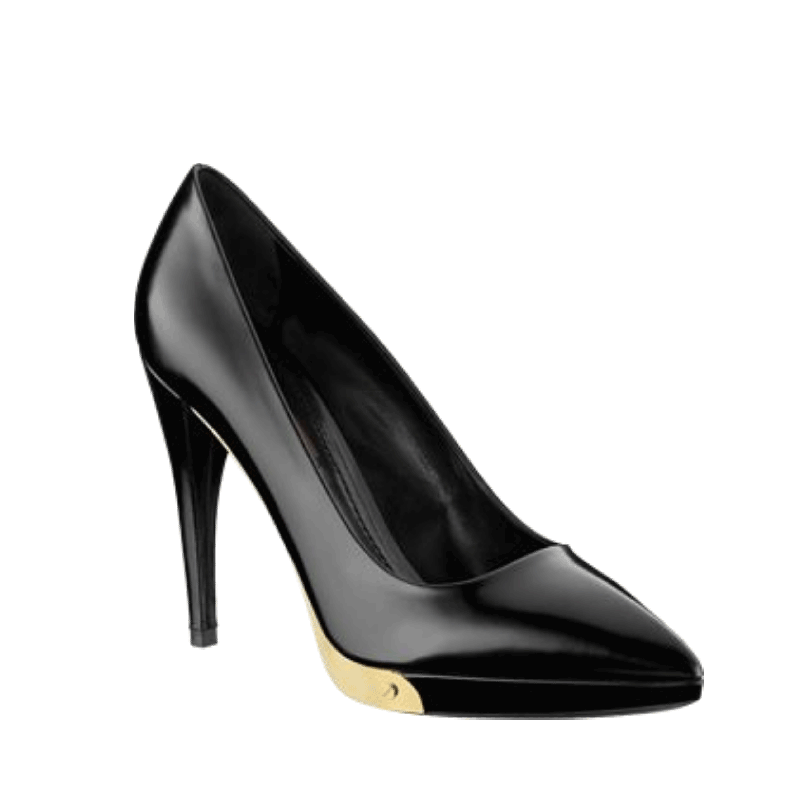 Super-sleek and ultra-modern, these glazed calf leather pumps feature a sexy stiletto heel, a pointed toe and a striking golden-finish plaque engraved with the Louis Vuitton signature.