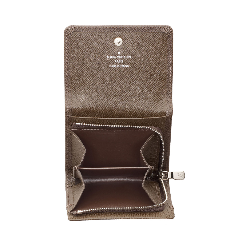 - Ta?ga leather discretely stamped with the initials LV, lining in cross grain leather