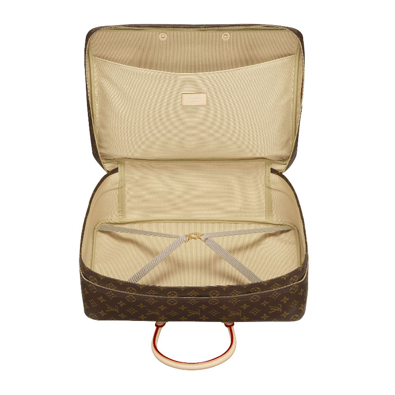 - Monogram canvas, natural leather trim, washable canvas lining