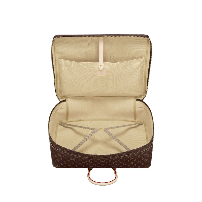 - Monogram canvas, natural cowhide trim, washable canvas lining