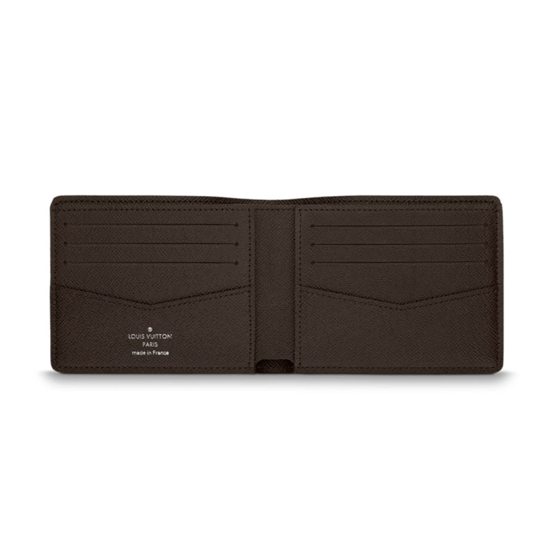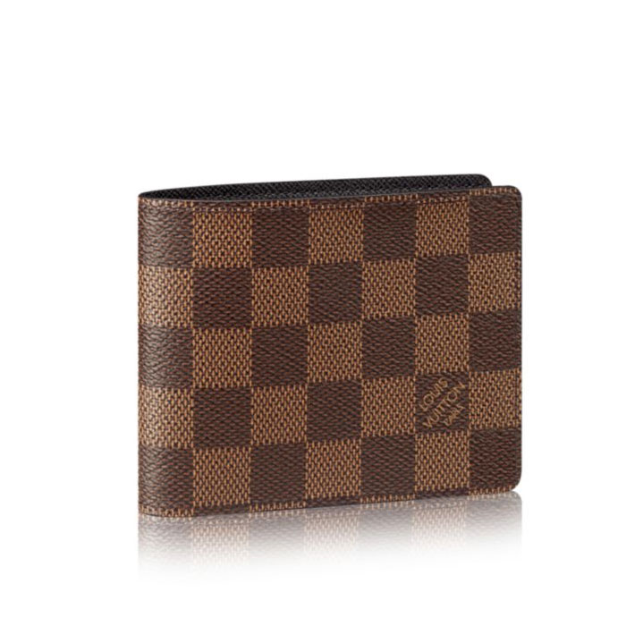 Slender by name, slender by nature. This wallet in masculine Damier Ebene is suitably compact and slim, will carry all the essentials and still fit into a front or back pocket with ease.