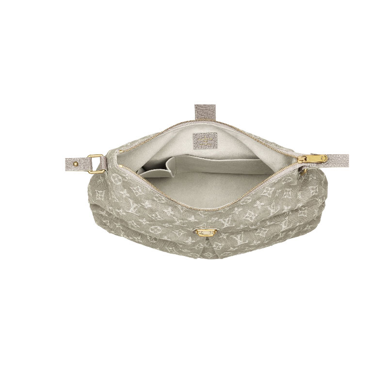 In vintage-look Monogram Denim, the softly pleated Slightly bag is lightweight and body-friendly. It has a three-part shoulder strap, enabling it to be carried on the shoulder and across the body.