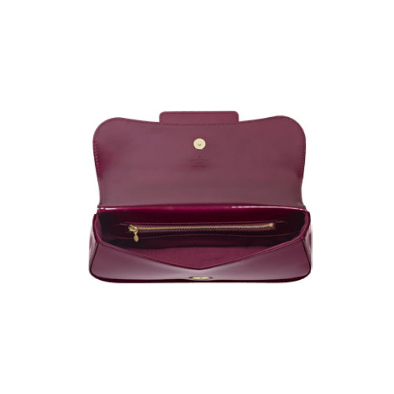The Sobe clutch is the perfect accessory for day to evening wear. It comes in patent leather with a striking LV signature in large golden brass letters.