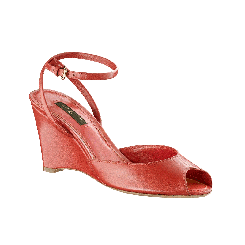 Designed by Sofia Coppola in collaboration with Louis Vuitton, this chic peep-toe wedge sandal in soft goat leather reflects Sofia Coppola's signature classic elegance and understated chic.
