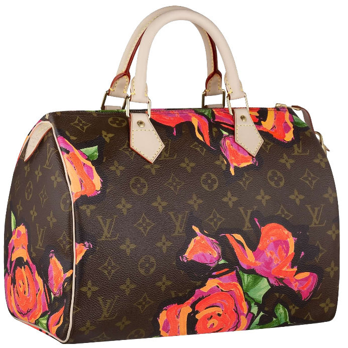 Speedy 30 is revisited in feminine Monogram Roses canvas inspired by the late American artist Stephen Sprouse. Its rounded form is spacious and its large zipper closure can be secured by a padlock.