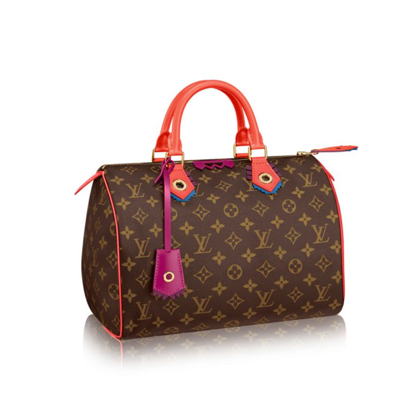 This collector鈥檚 edition of the Speedy fuses the timeless chic of Monogram with exotic embellishments. The bag鈥檚 Toron handles are mounted on finely worked motifs of ethnic inspiration, bringing a playful pop of color and charm to a cult classic.
