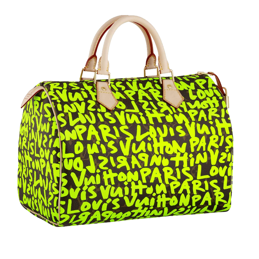A classic design that has been revisited in fluorescent Monogram Graffiti canvas inspired by late American artist Stephen Sprouse. Speedy 30 has comfortable, rounded leather handles.