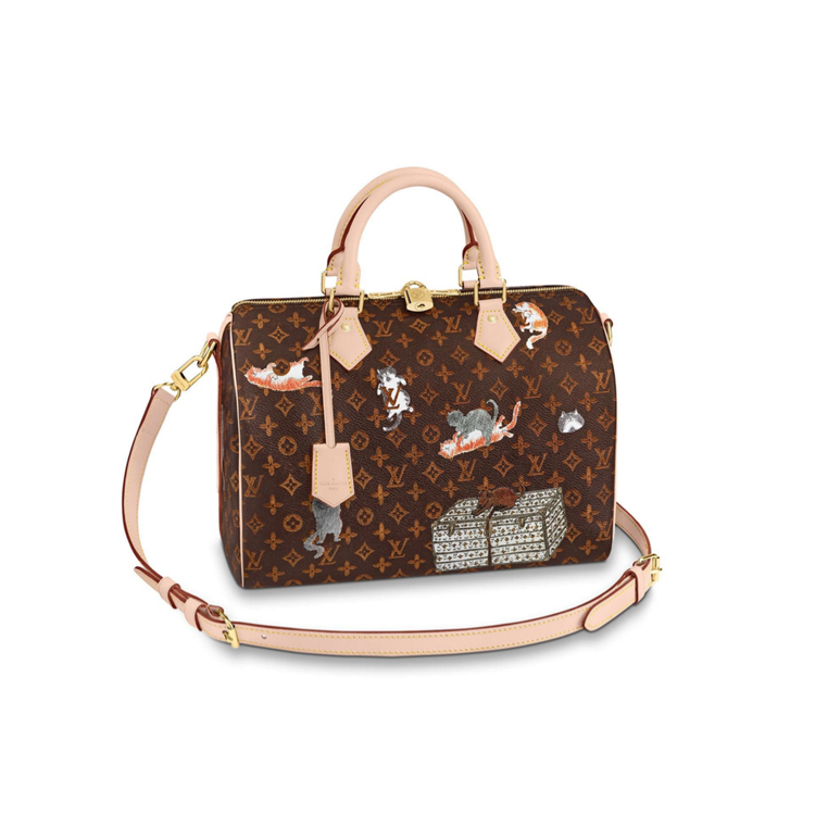 Nicolas Ghesquiere and stylist Grace Coddington pay homage to the animals they love with this “Catogram” version of the Speedy bag for Cruise 2019. Louis Vuitton’s iconic Monogram canvas becomes a playground for a throng of lively cats and dogs. A lighthearted new take on a versatile bag, perfect for everyday use.