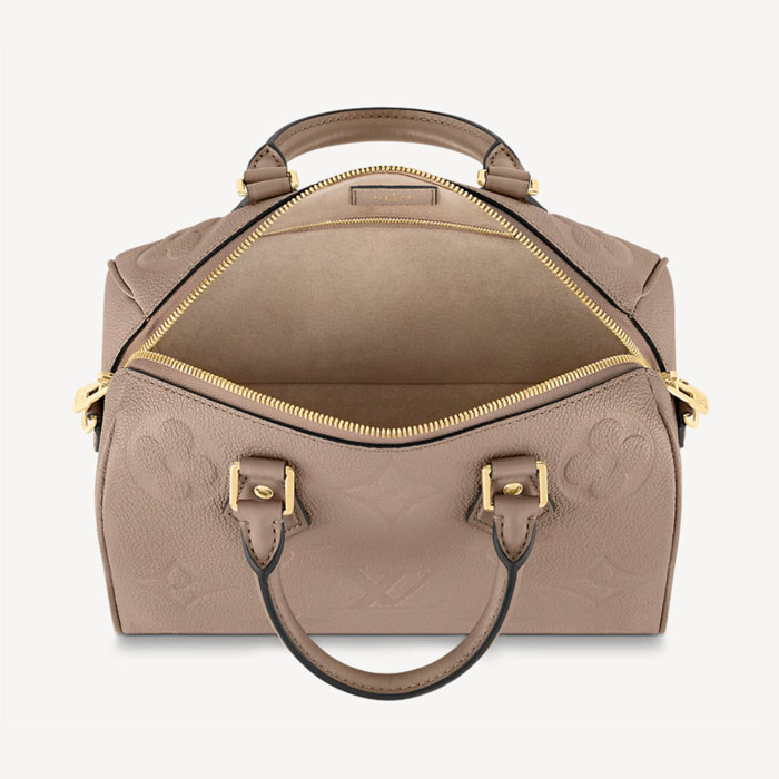 Made from grained Monogram Empreinte leather with the embossed Oversized Monogram pattern, the Speedy Bandouli猫re 25 handbag radiates discreet style. Its unmistakable lines, Toron handles, engraved padlock, adjustable and detachable strap make this bag instantly recognizable. The generous capacity and body-friendly construction make it eminently practical.