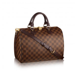 Every feature of this Speedy is iconic: the unique shape, the leather handles, the Damier Ebene canvas. No wonder it has achieved cult status the world over. Designed for travelers in 1930 (the name is a nod to the era's rapid transit), with a strap for casual cross-body wear, today’s Speedy 30 is a perfect city bag – supple, lightweight and forever in style.