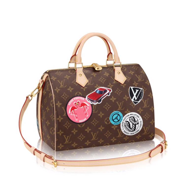 Designed for travelers in 1930 (the name is a nod to the era's rapid transit), with a strap for casual cross-body wear, todays Speedy 30 is a perfect city bag supple, lightweight and forever in style. This version in Monogram coated canvas features Creative Director Nicolas Ghesquieres playful take on classic hotel stickers, which Gaston-Louis Vuitton used to collect during all his travels.