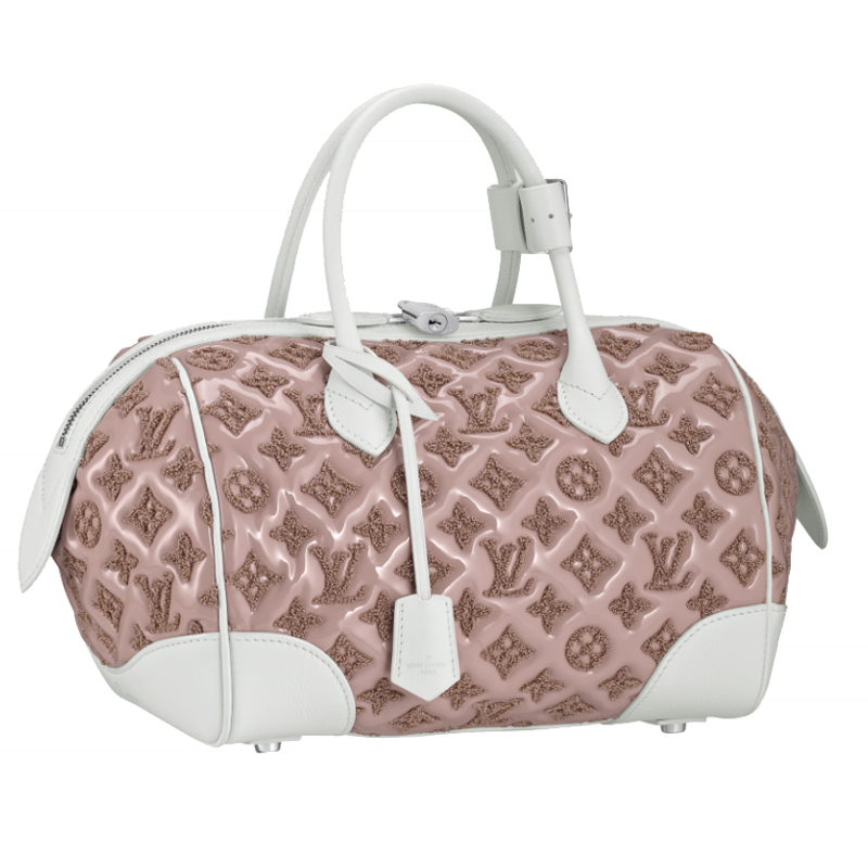 A classic shape is given a modern update with the Speedy Round. Its shiny patent leather is contrasted with matt embroidery to create a delinghtfully distinctive city bag.