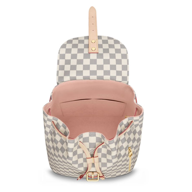Whether you're a functionalist or a fashion fetishist, the feminine Sperone backpack in Damier Azur canvas is your go-to urban travel companion. It combines a roomy interior with the design details you'd expect from superior Louis Vuitton craftsmanship.