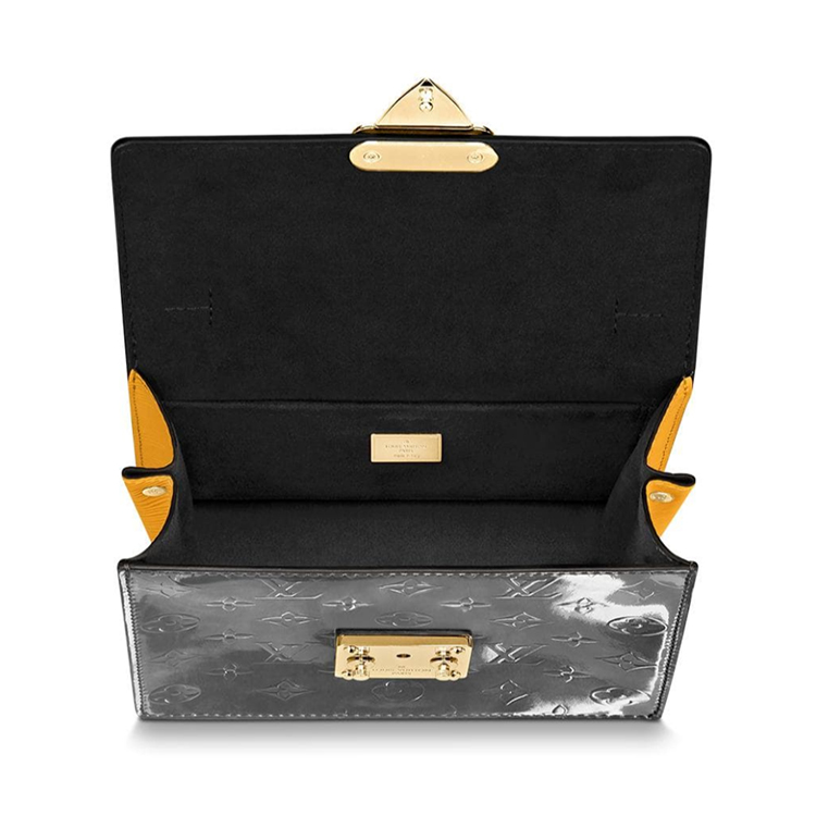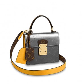 The Spring Street in Monogram Vernis patent leather is a versatile bijou of a handbag. Inspired by a model designed in 1999 by then-artistic director Marc Jacobs, it presents a mix of signature materials in contrasting colors, for a cool, edgy attitude. A top handle and removable strap multiply the carry options for this covetable bag.