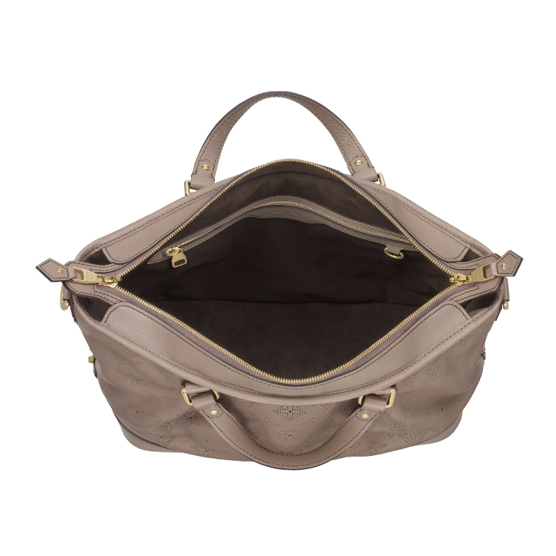 Exquisitely soft Mahina leather with a perforated Monogram design helps make the Stellar PM the epitome of stylish elegance. Delicate pleats and sophisticated golden brass pieces enhance it further.