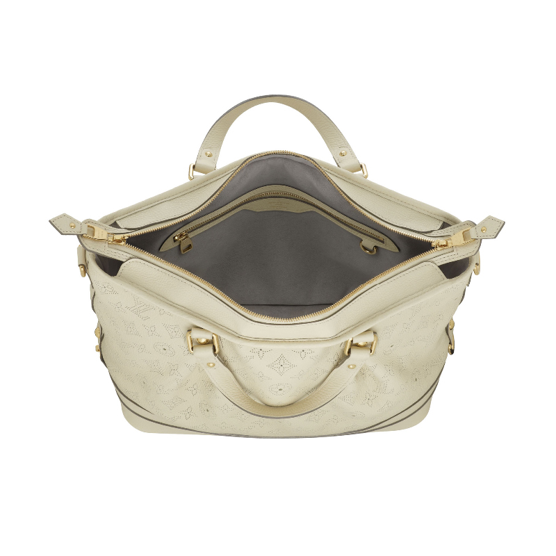 Exquisitely soft Mahina leather with a perforated Monogram design helps make the Stellar PM the epitome of stylish elegance. Delicate pleats and sophisticated golden brass pieces enhance it further.