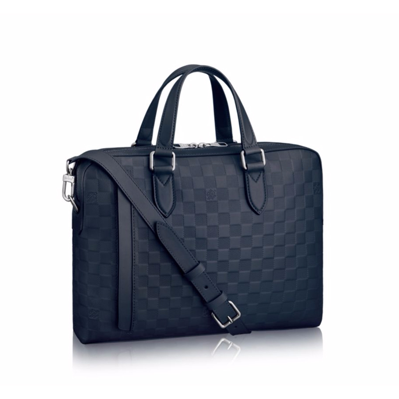 Fashioned in embossed Damier Infini leather, this compact yet sophisticated briefcase is the ideal format for a 15-inch laptop. Very practical thanks to its external vertical zipped compartment and many internal pockets, it can be carried by hand, over the shoulder and cross body.