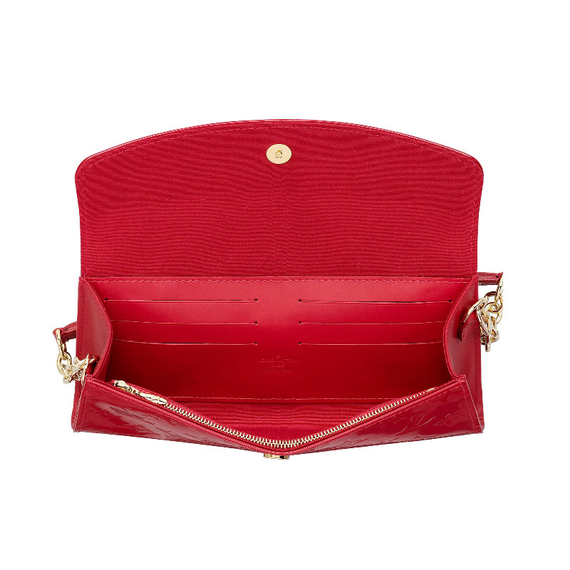 This purse is the ideal accessory for a special occasion. It has compartments for change and credit cards and features a metal Louis Vuitton badge.
