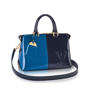 Daring and modern, the Tote Miroir in smooth patent calf leather is distinguished by its embossed LV initials signature, sleek shape and unexpected combinations, combined with handles and shoulder strap in a contrasting color or iconic Monogram canvas. True to its name, it features a bag charm with a pocket mirror.