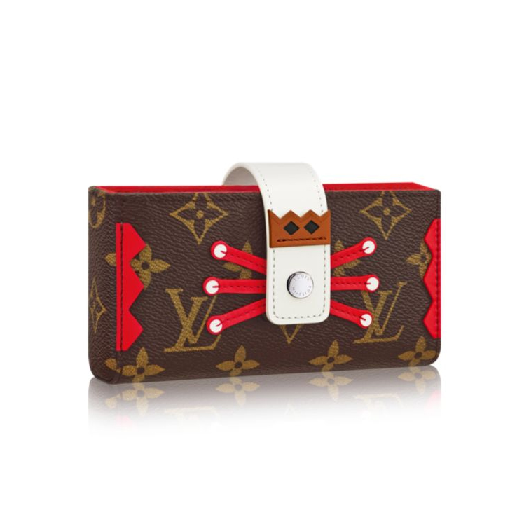 This pouch in iconic Monogram canvas – customized with a mask overlay inspired by Gaston Vuitton’s collection of African tribal masks – is the fashionable way to carry your smartphone. You can carry 1 or 2 smartphones with it.