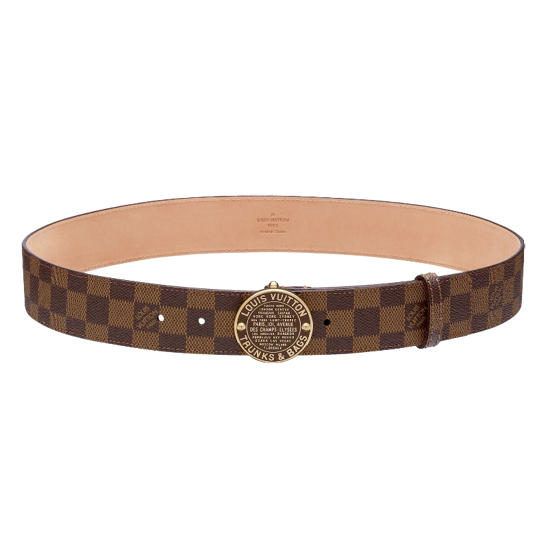 Created in 1905, the Trunks & Bags blazon is reinterpreted in a round enameled buckle. It is associated to the emblematic Damier canvas. Casual and sophisticated, it is perfect to be worn on jeans.