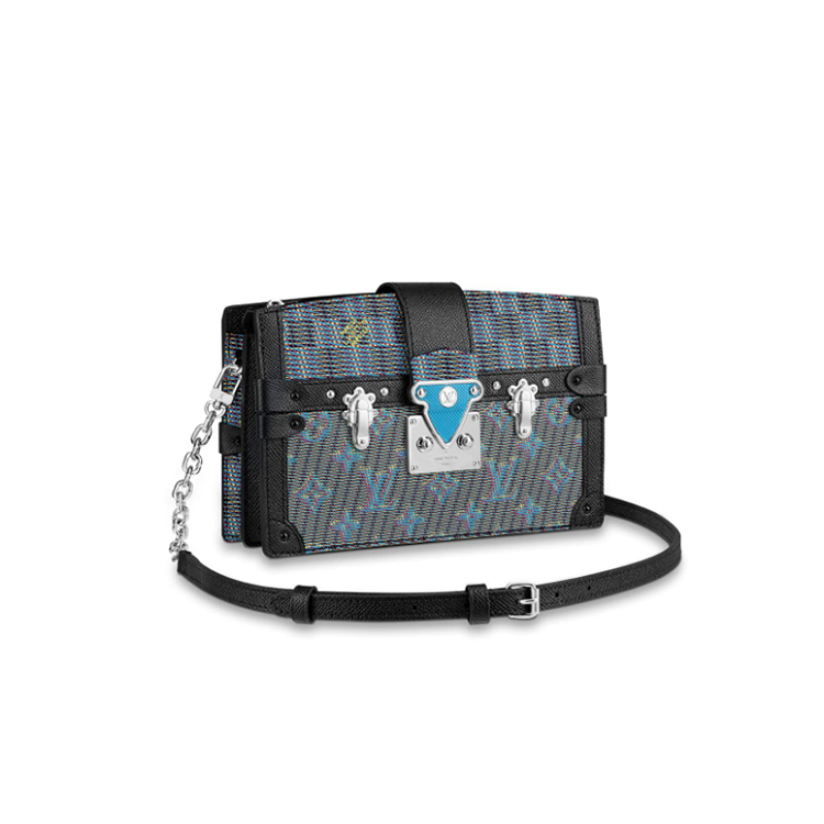 The soft-sided Trunk Clutch is fashioned from calf leather with an electric blue Monogram LV Pop print that combines the Monogram and Damier motifs in a single neon pattern. The bag鈥檚 design continues Louis Vuitton鈥檚 exploration of its trunkmaking heritage and includes historic trunk details such as the iconic S-lock clasp.