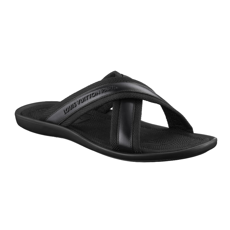 Ideal for both city and beach, this sporty mule combines Louis Vuitton's instantly identifiable Damier Geant canvas with calf leather straps and a supple, comfortable rubber sole.