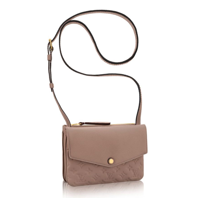 Twice offers trendy design and flawless functionality in a single lightweight and compact bag. Twice transitions from day to evening with ease: worn cross-body for a look of casual chic, or suspended elegantly from the shoulder by its long leather strap. Compartments front and back keep belongings organized. Twice is offered in playful and high-fashion shades of Monogram Empreinte leather.