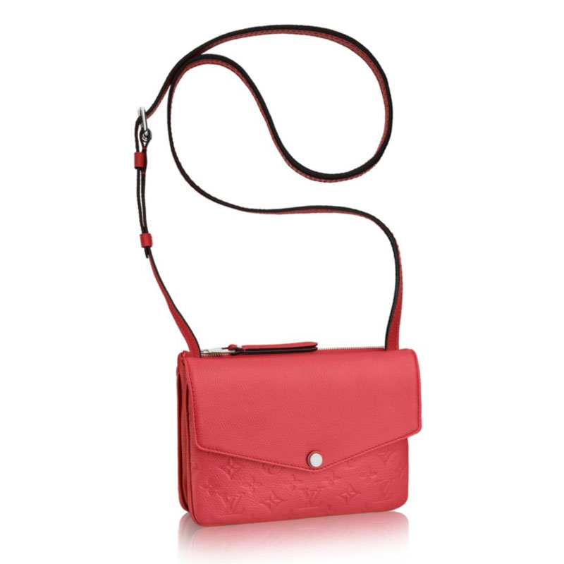 Twice Clutch offers trendy design and flawless functionality in a single lightweight and compact bag. Twice transitions from day to evening with ease: worn cross-body for a look of casual chic, or suspended elegantly from the shoulder by its long leather strap. Compartments front and back keep belongings organized. Twice is offered in playful and high-fashion shades of Monogram Empreinte leather.