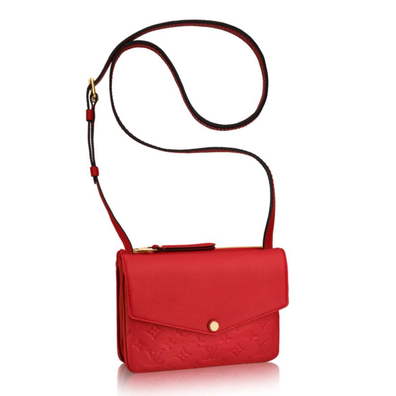 Twice Clutch offers trendy design and flawless functionality in a single lightweight and compact bag. Twice transitions from day to evening with ease: worn cross-body for a look of casual chic, or suspended elegantly from the shoulder by its long leather strap. Compartments front and back keep belongings organized. Twice is offered in playful and high-fashion shades of Monogram Empreinte leather.